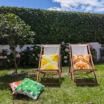 Zur Entspannung der Gäste bietet die 2-Zimmer- Casinha Do Chico eine sonnige Terrasse, ausgestattet mit einer Küchenzeile.